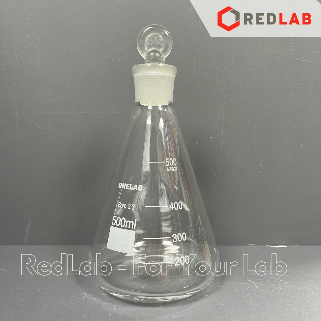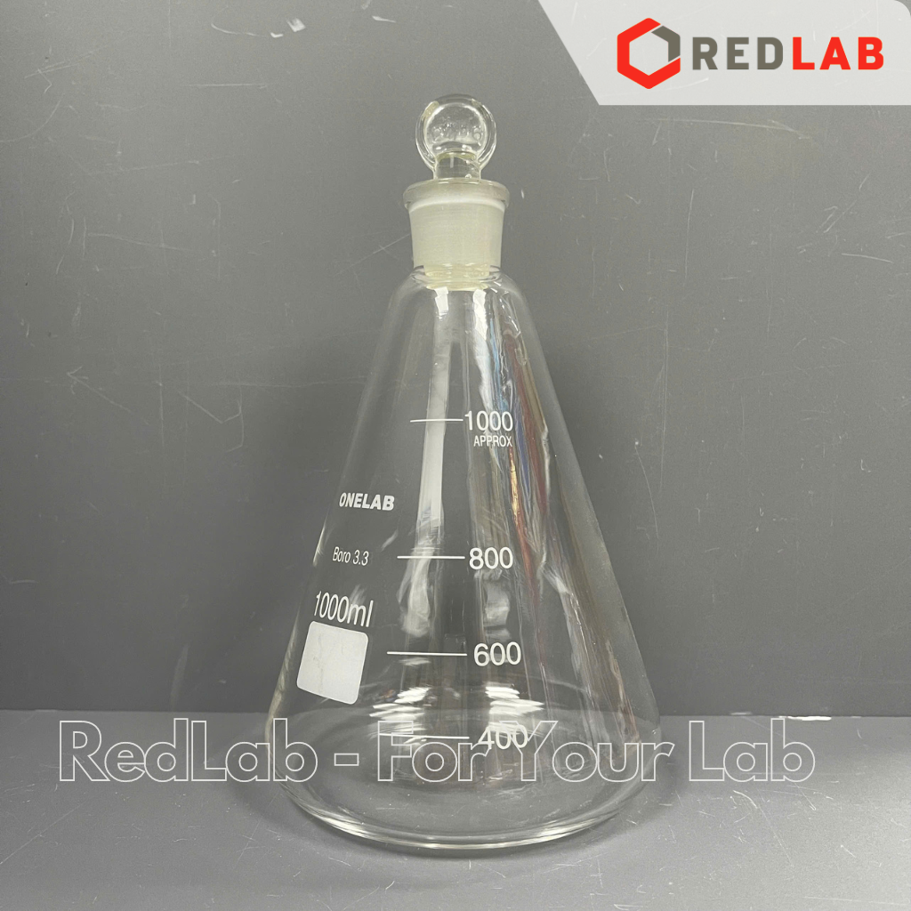 Bình tam giác có nút ONELAB 50 100 250 500 1000ml, erlen cổ nhám, nắp mài thuỷ tinh, đựng mẫu thí nghiệm, có VAT
