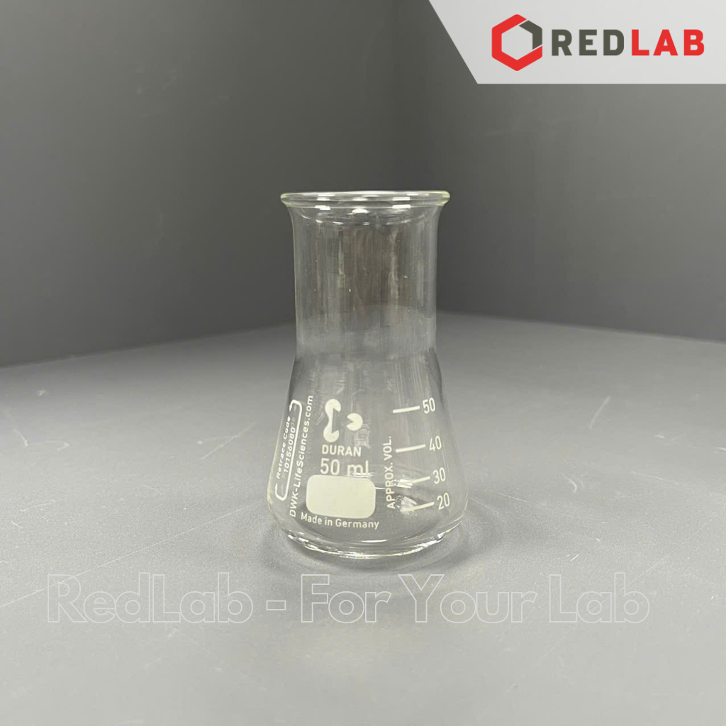 Bình tam giác cổ rộng DURAN Class A 50 100 200 250 300 500 1000 2000 ml, Wide neck Erlenmeyer, có VAT