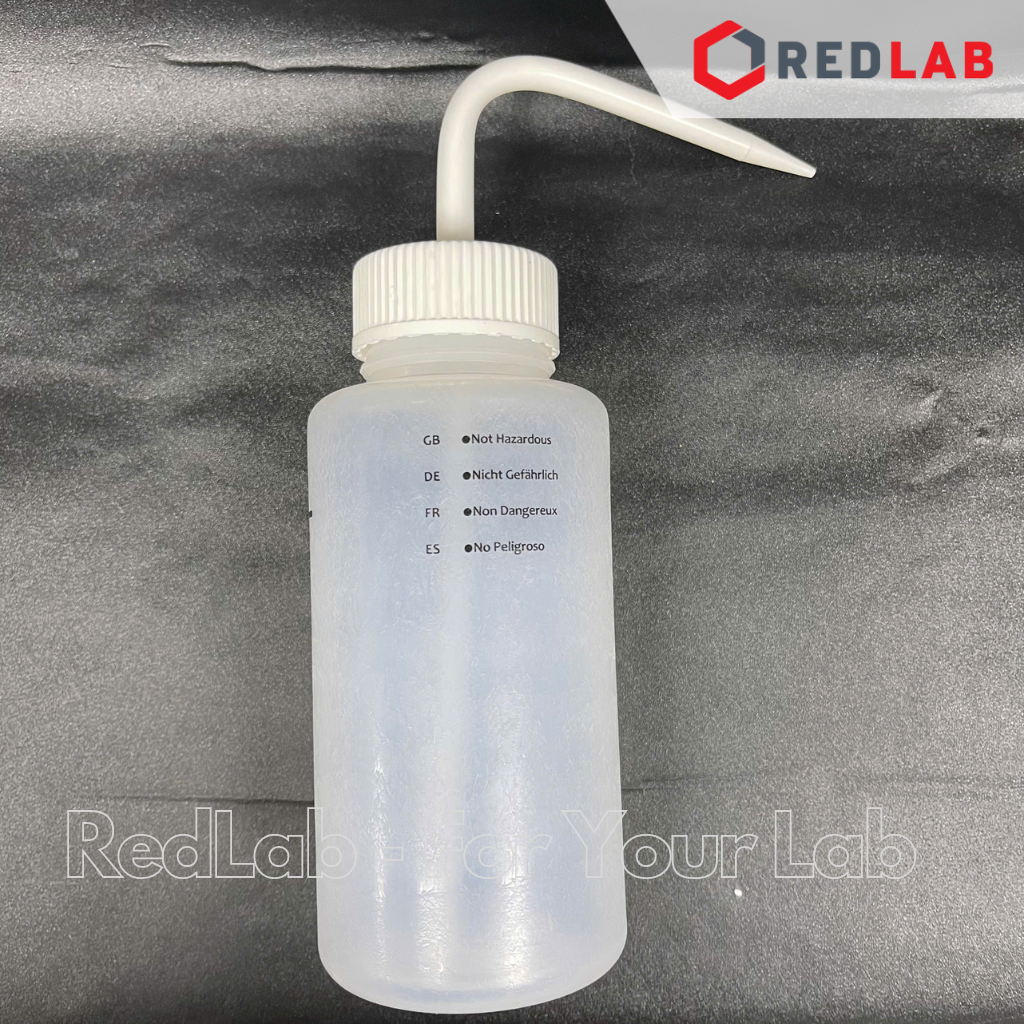 Bình tia nhựa miệng rộng, LDPE 500ml, nhãn Acetone nắp đỏ ONELAB