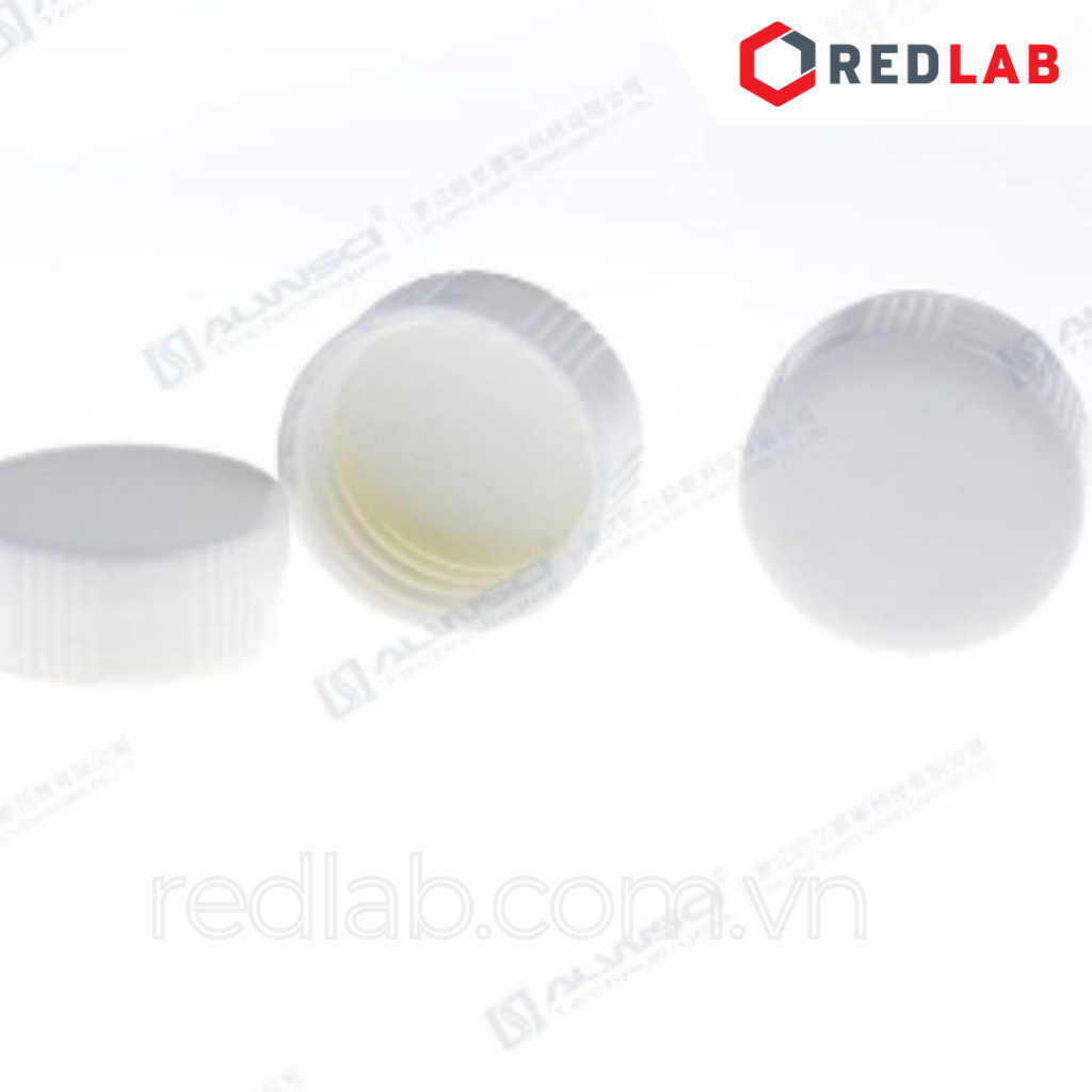 C0000057+C0000216 Chai thủy tinh Vial trắng 20ml, 27.5x57mm, hộp 100 cái + Nắp vặn kín 24-400 (màu trắng, PP), Septa 1.5mm, natural PTFE / White Silicone, gói 100 cái ALWSCI