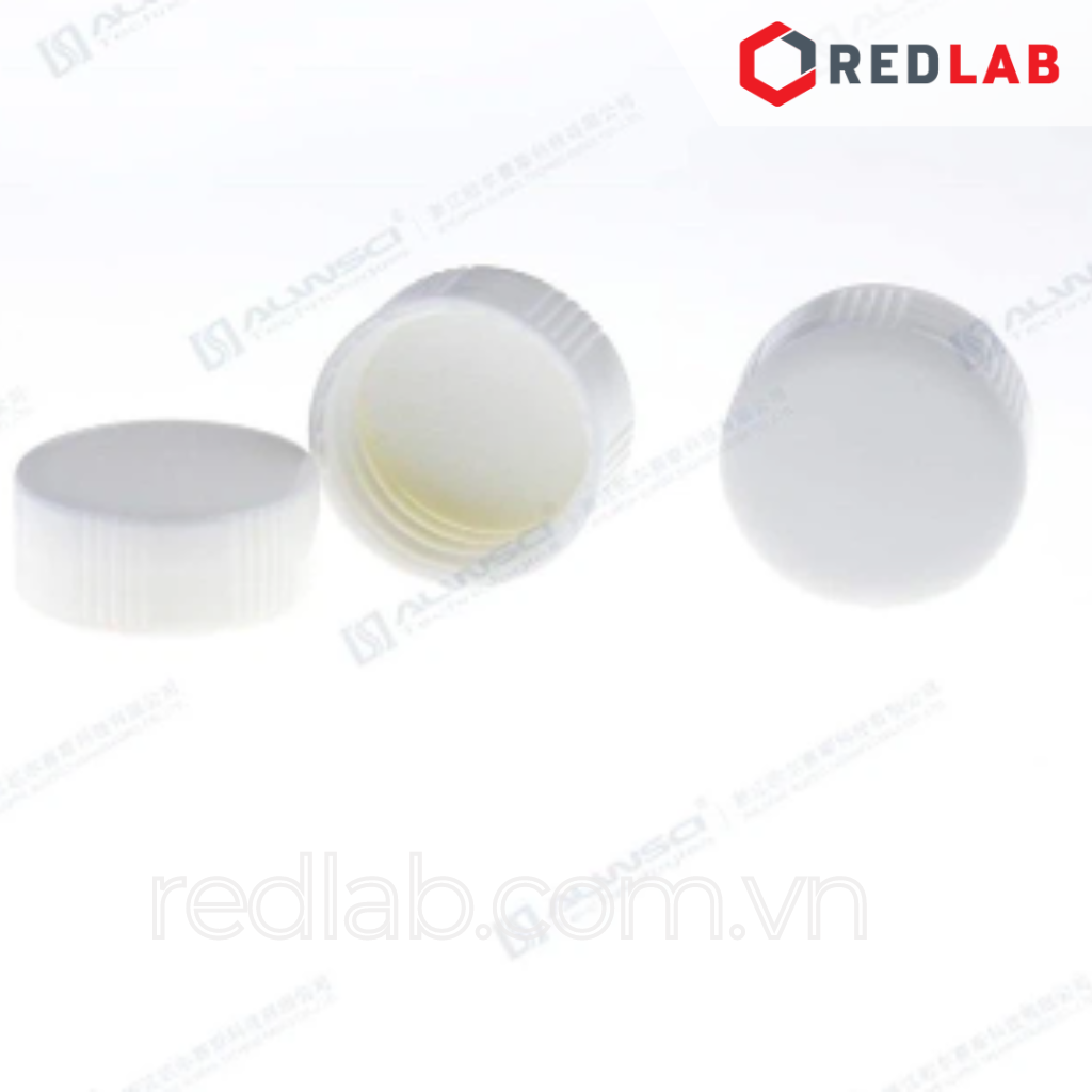 C0000065+C0000216 Chai thủy tinh Vial trắng 60ml, 27.5x140mm, hộp 100 cái + Nắp vặn kín 24-400 (màu trắng, PP), Septa 1.5mm, natural PTFE / White Silicone, gói 100 cái ALWSCI