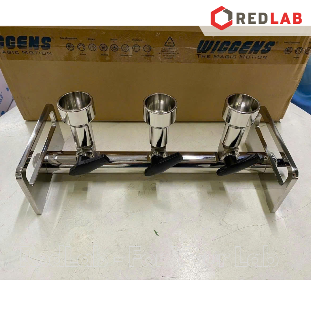 Bộ Manifold 3 nhánh thép không gỉ WIGGENS BioVac320 (167110-23) dùng lọc vi sinh thí nghiệm (chưa gồm phễu) có VAT