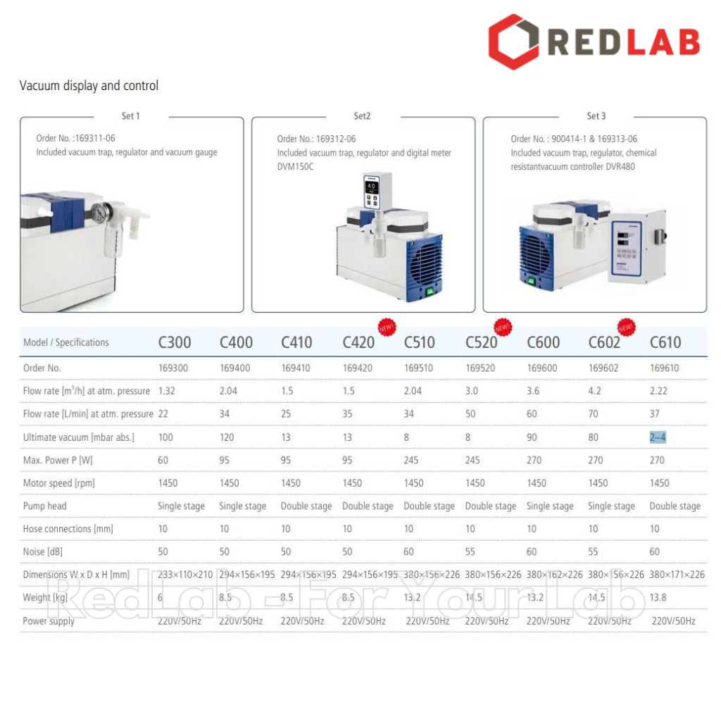 Giới thiệu về Bơm màng chân không kháng hóa chất WIGGENS C300 (169300), 22 lít/phút, 100mbar, cho thí nghiệm vi sinh