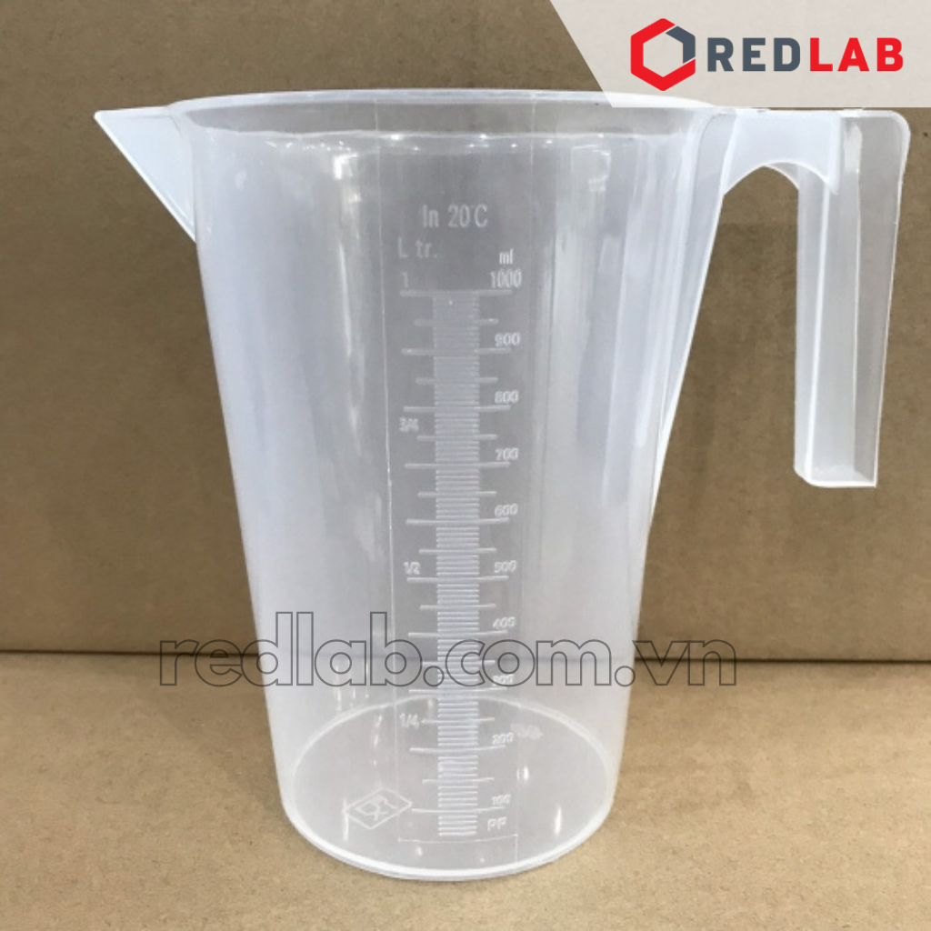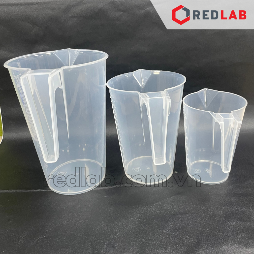 Ca nhựa PP có quai nửa, có mỏ, vạch khắc nổi trắng GENLAB 500 1000 2000 ml, hấp tiệt trùng, có VAT