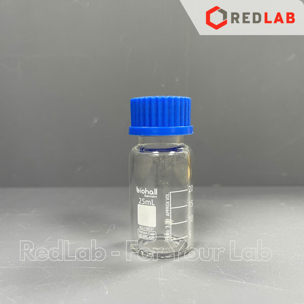 Giới thiệu về Chai trung tính trắng BIOHALL 25ml đến 20L - nắp vặn PP xanh GL25 GL32 GL45, thuỷ tinh boro 3.3 vạch trắng