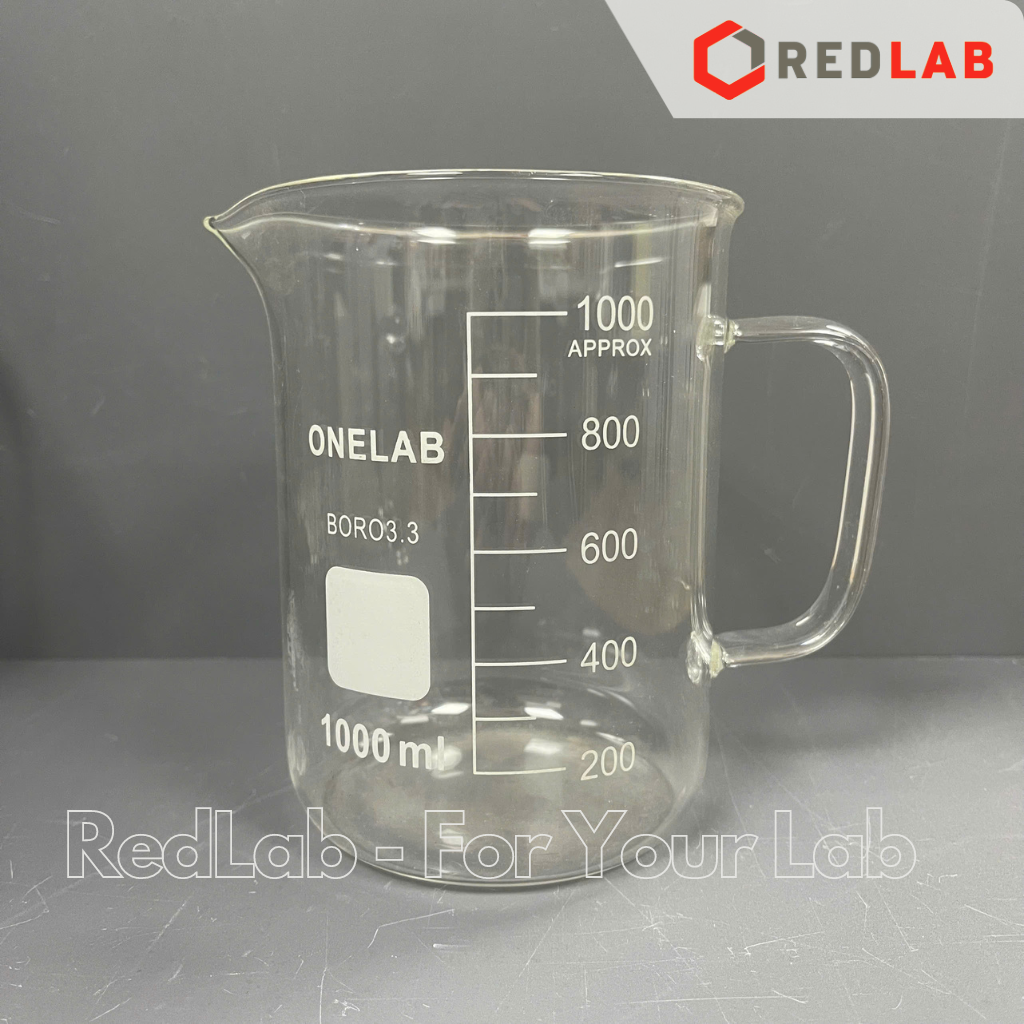 Cốc đốt thuỷ tinh có tay cầm ONELAB 250 500 1000 2000 ml, beaker thí nghiệm có quai chịu nhiệt, có VAT