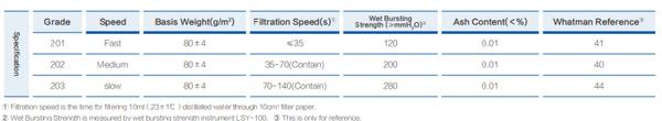 - Tốc độ lọc: 201 - chảy nhanh , 202 - trung bình , 203 - chậm