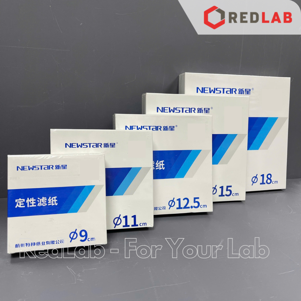 Giấy lọc định tính NewStar Ø 7 9 11 12.5 15 18 cm, loại 101 102 103, chảy nhanh / trung bình / chậm (hộp 100 tờ) có VAT