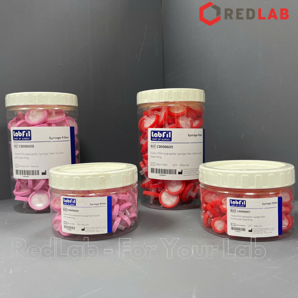 C0000607 PTFE Hydrophilic (Ưa nước) Syringe Filter 13mm 0.45µm with Outer Ring.100pcs/pk. labfil (ALWSCI)