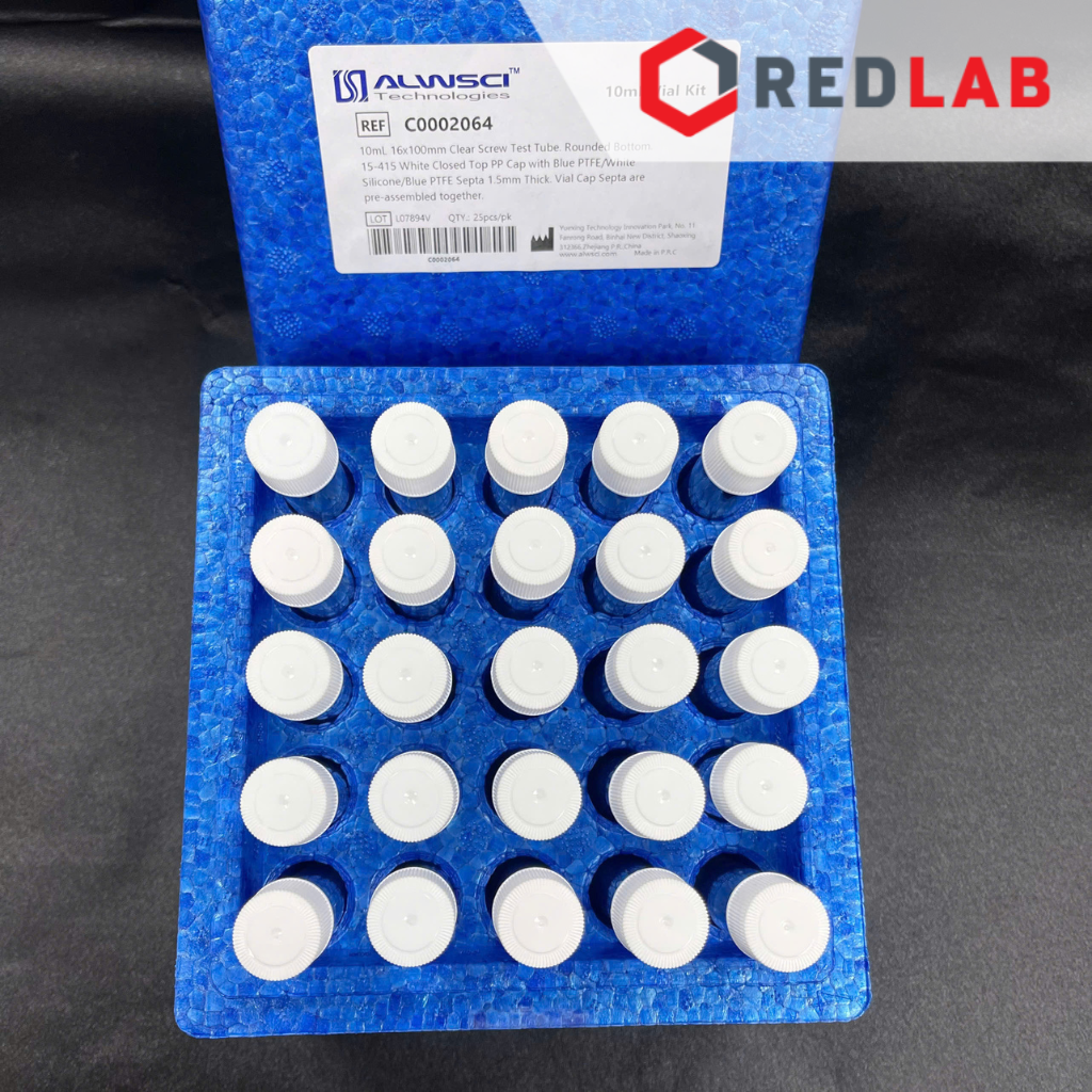 [Hộp 25 cái] Ống nghiệm COD 10ML 16x100mm nắp vặn kín 15-415 PP trắng ALWSCI C0002064 septa 1.5mm PTFE / silicon, có VAT