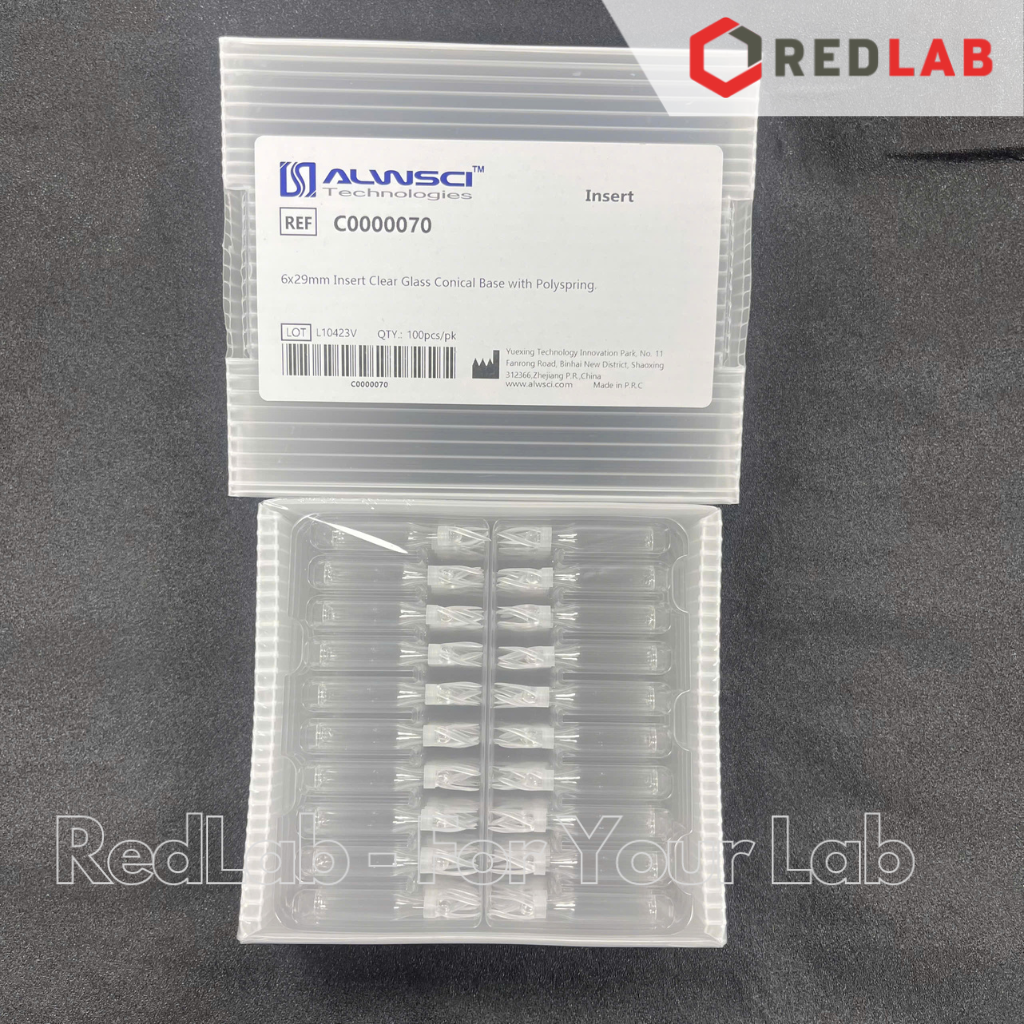 Ống insert sắc ký ALWSCI 6x31mm đáy bằng / đáy nhọn / 6x29mm có lò xo định tâm, cho vial 2ml 9-425, có VAT