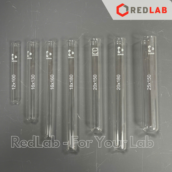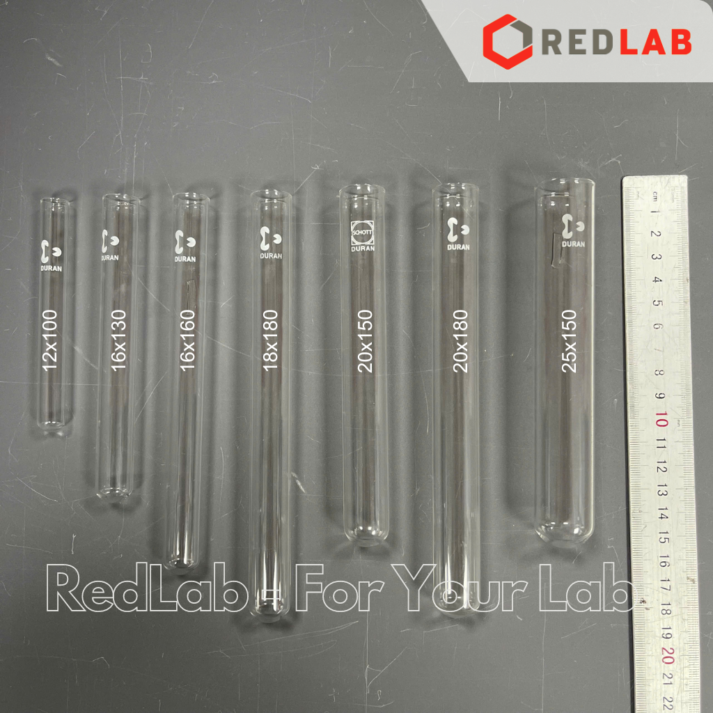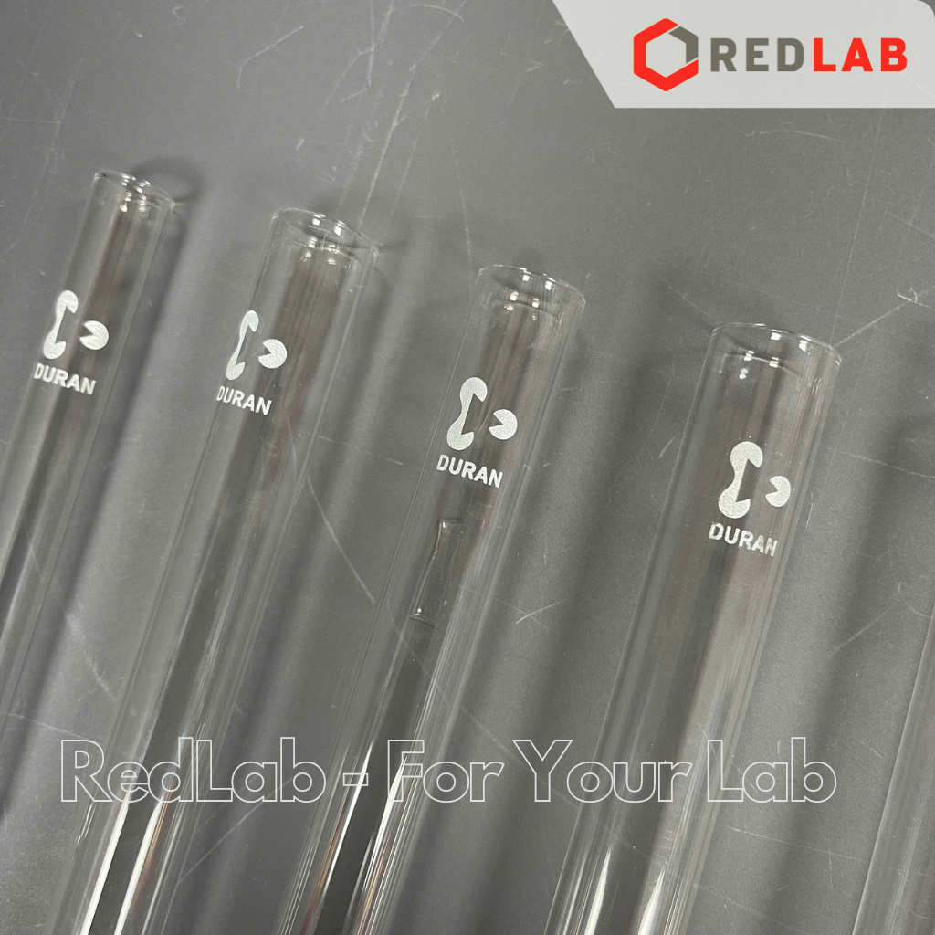 Ống nghiệm không vành (in logo) DURAN 12x100 16x130 16x160 18x180 20x150 20x180 25x150 mm, thủy tinh soda-lime, có VAT
