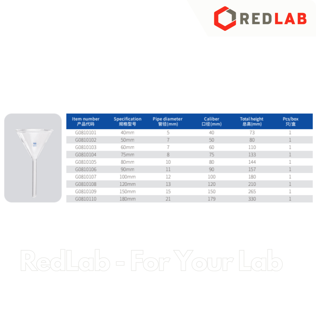Phễu thủy tinh GlassTAO Ø 40 50 60 75 90 100 120 150 mm, dùng chiết rót dung dịch, mẫu thí nghiệm, hương liệu, có VAT