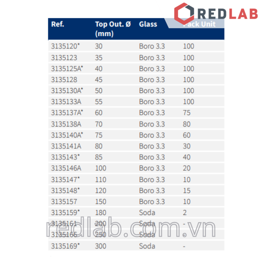 Thông tin về Phễu thủy tinh NORMAX Bồ Đào Nha 40 50 60 70 80 100 120 150mm