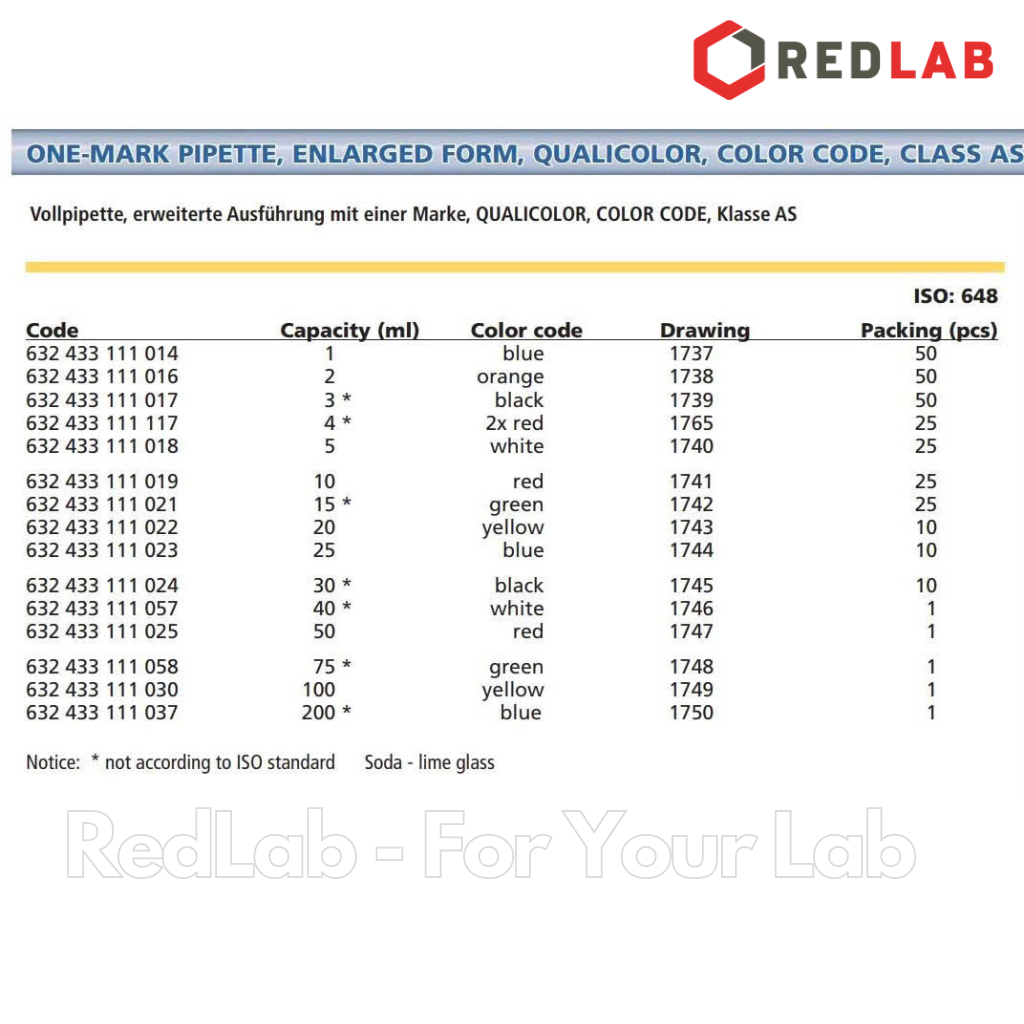 | 632433111014 | Pipette bầu 1 vạch 1 ml Wertlab | 1ml |