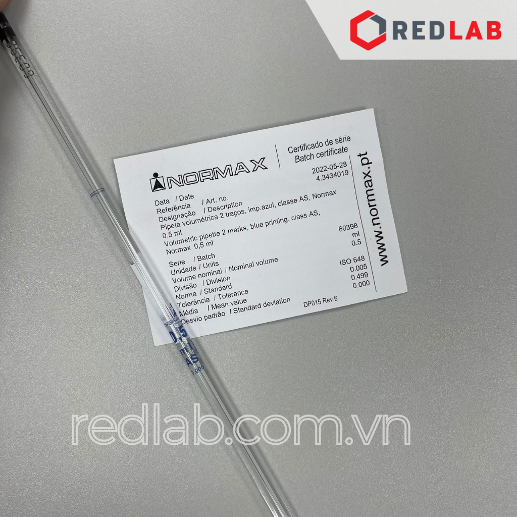 Pipet bầu 2 vạch NORMAX Bồ Đào Nha 0.5 1 2 3 4 5 6 7 8 9 10 11 15 20 25 30 40 50 100 150 ml, có VAT