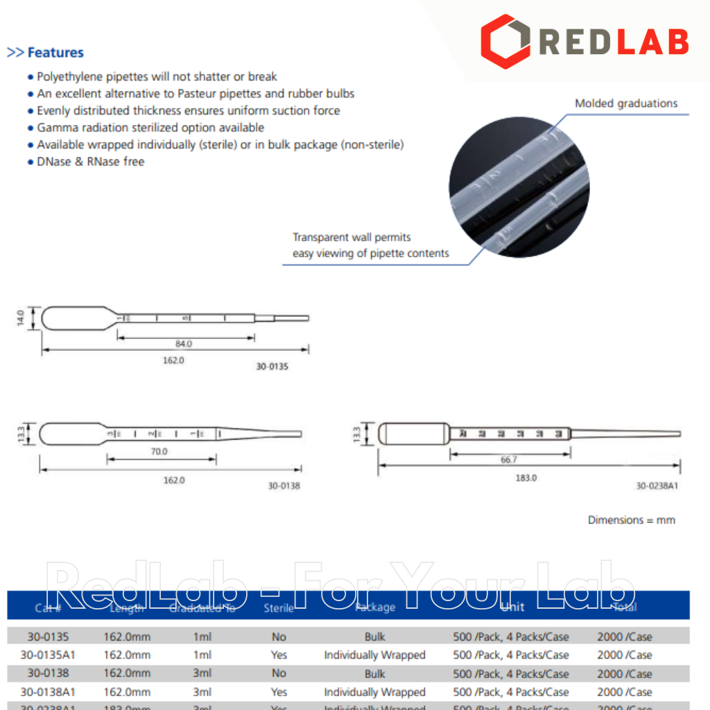 | 30-0135 | Pipet pasteur (ống hút nhỏ giọt) nhựa PE 1ml, non-sterile (hộp 500 cái) dùng trong lab thí nghiệm | BIOLOGIX |