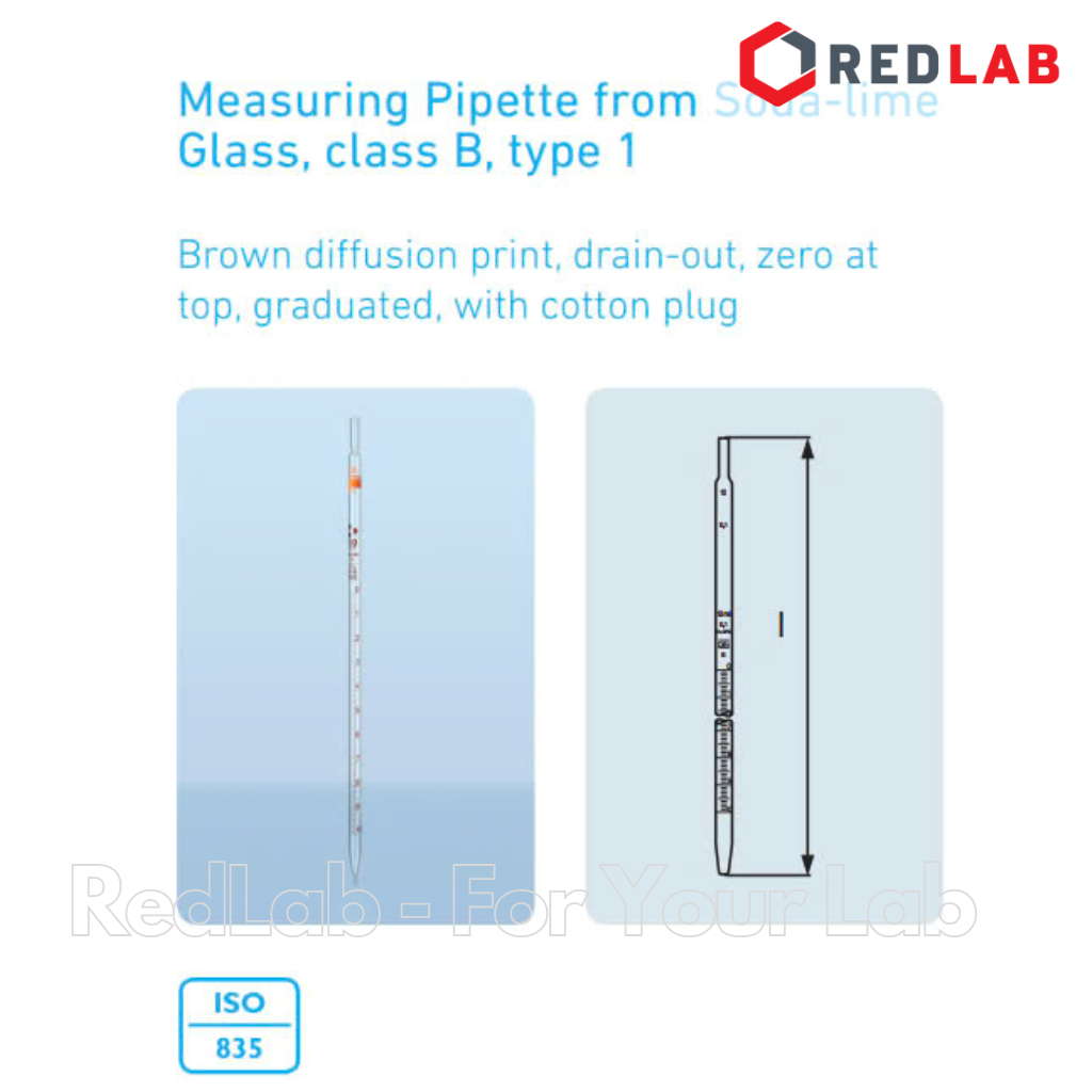 Pipet thẳng vạch nâu DURAN Class AS 0.5 1 2 5 10 20 25 ml, zero trên đỉnh, ống hút thủy tinh kẻ vạch thí nghiệm, có VAT